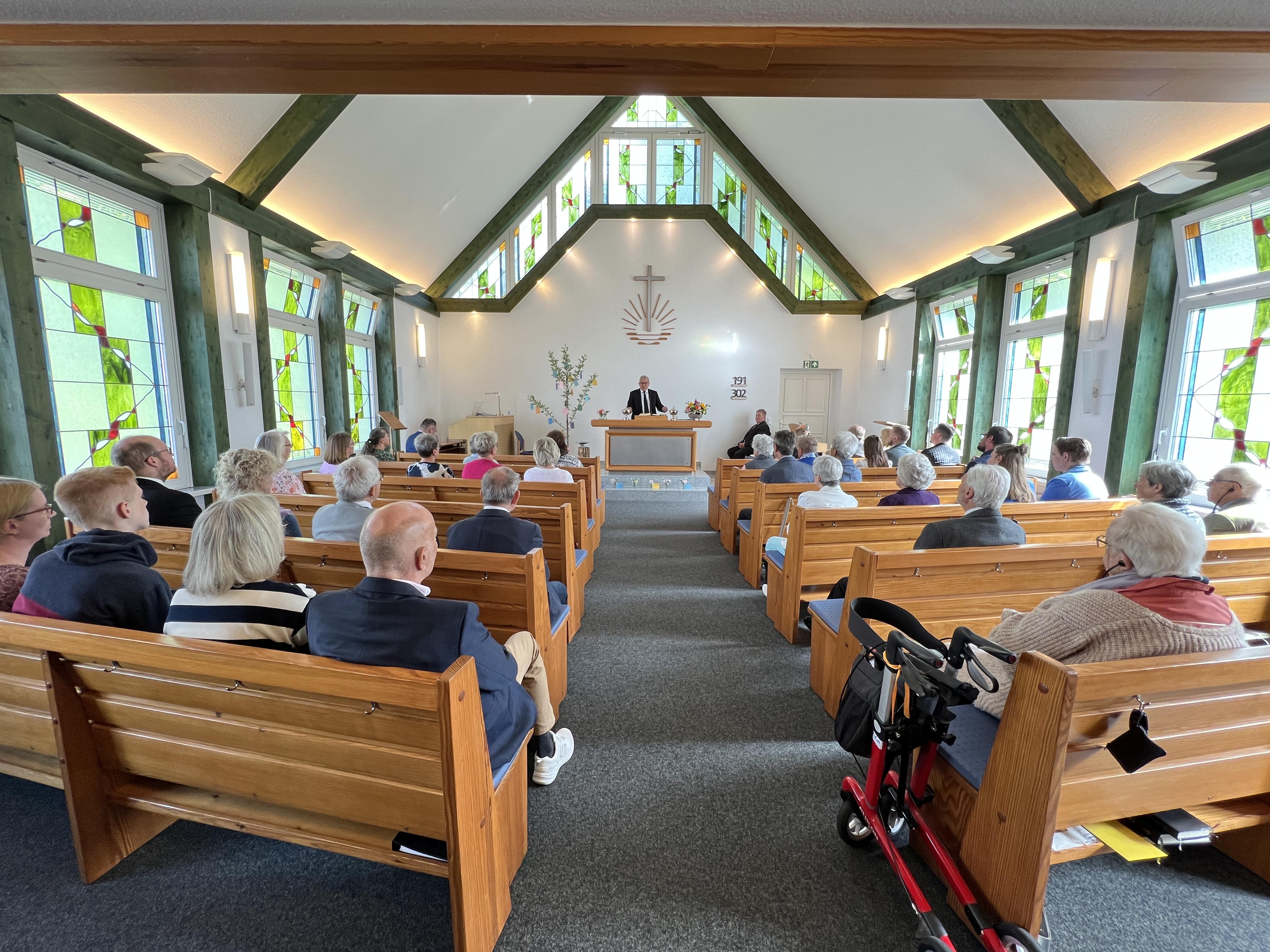 Zu Beginn des GD sang die Gemeinde das Lied aus dem Gesangbuch, Nr 191: „Nimm Jesus in dein Lebensschiff im Glauben und Vertrauen.“ Nach dem Eingangsgebet las der Vorsteher ein Bibelwort aus dem Hiob vor, aus Kap. 19, einen Teil aus Vers 25: „Aber ich weiß, dass mein Erlöser lebt, …“