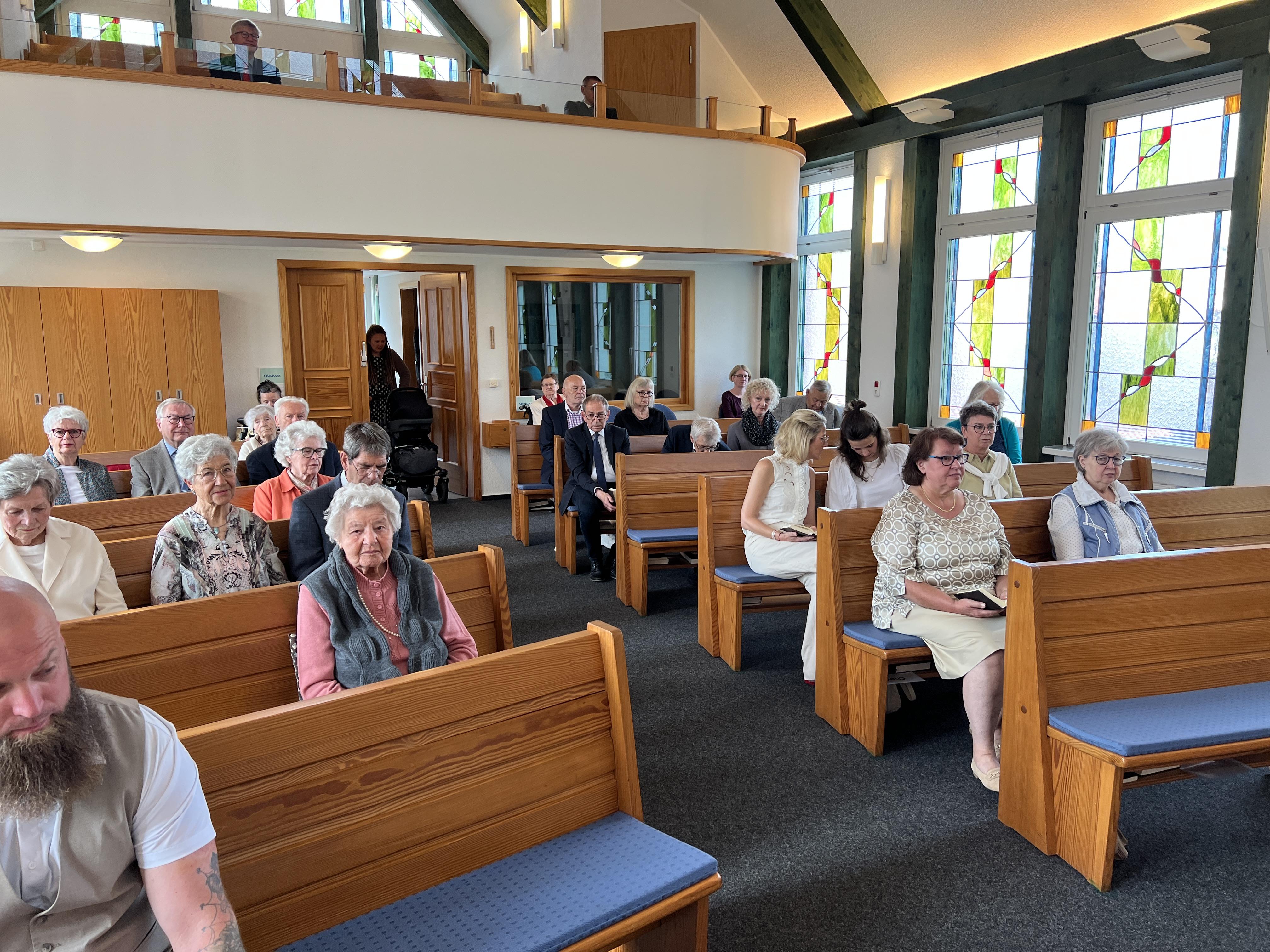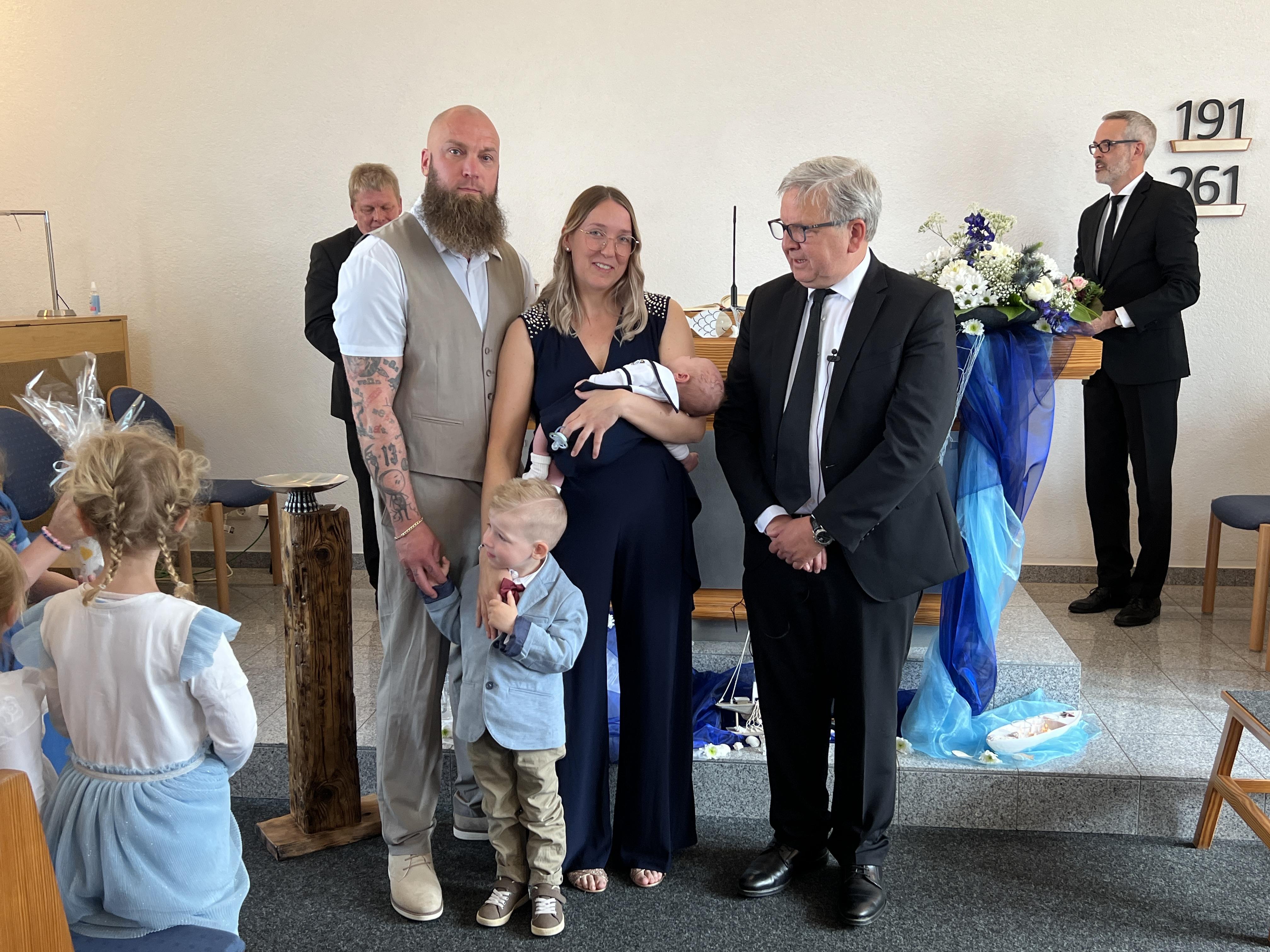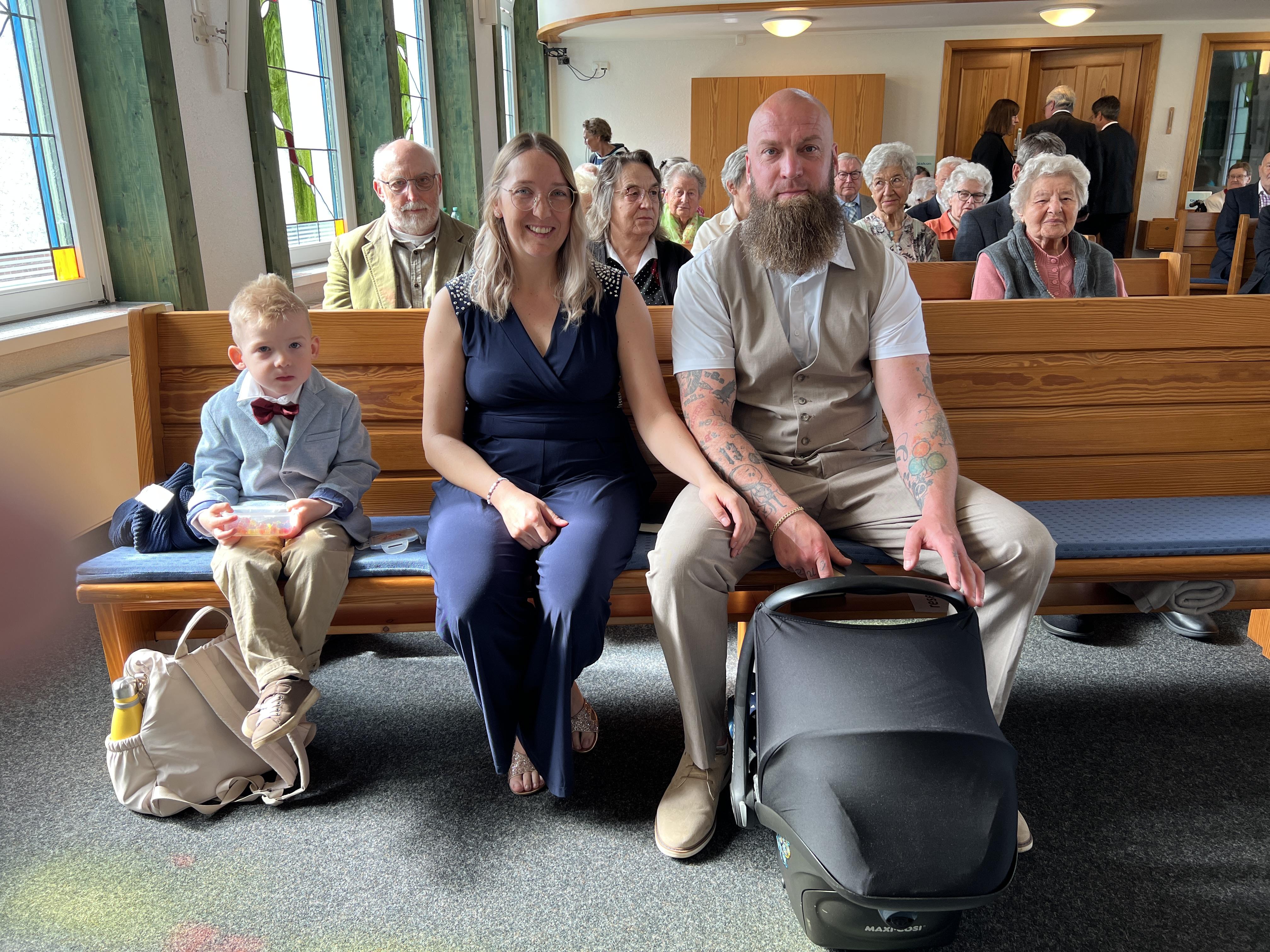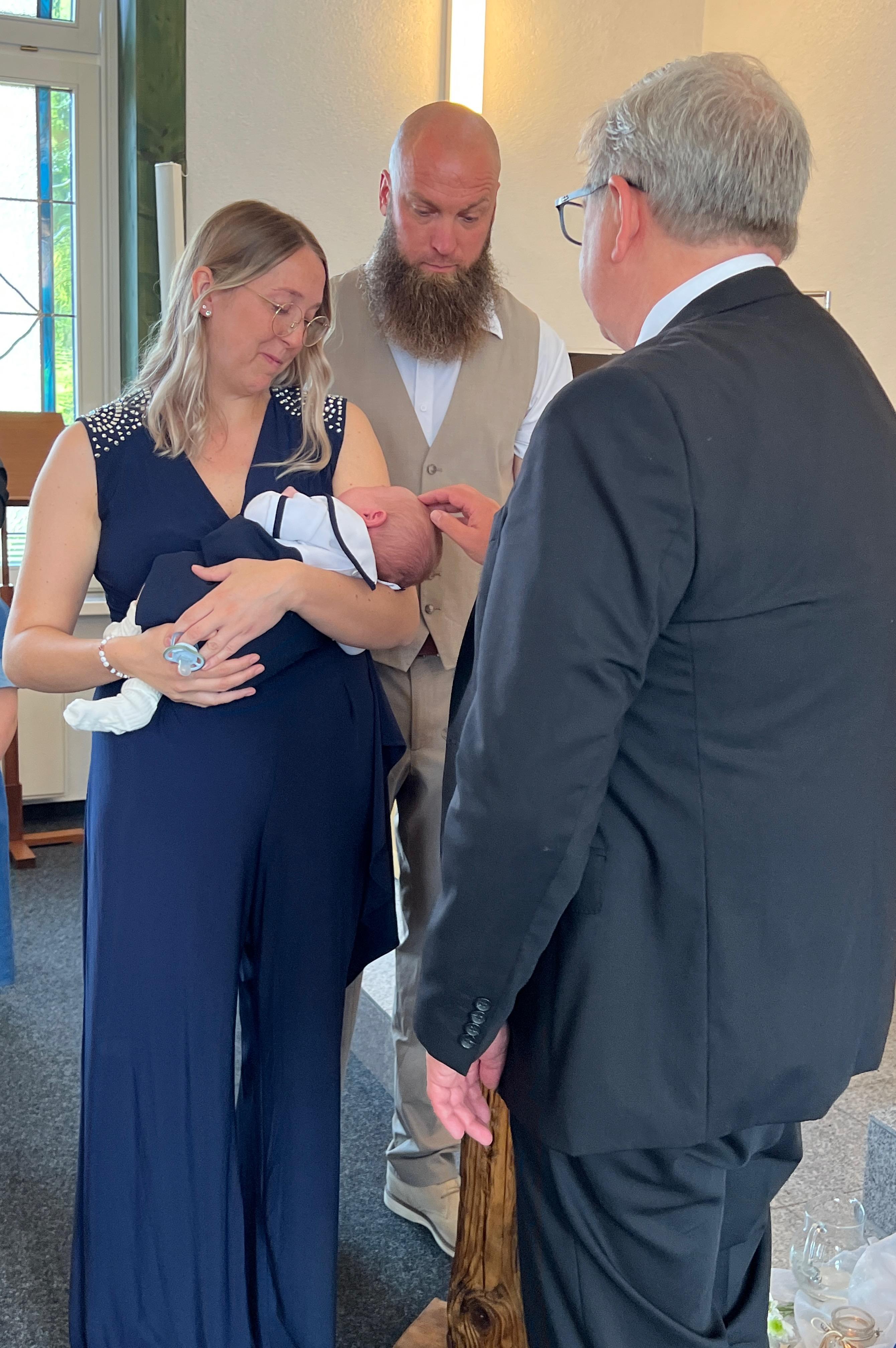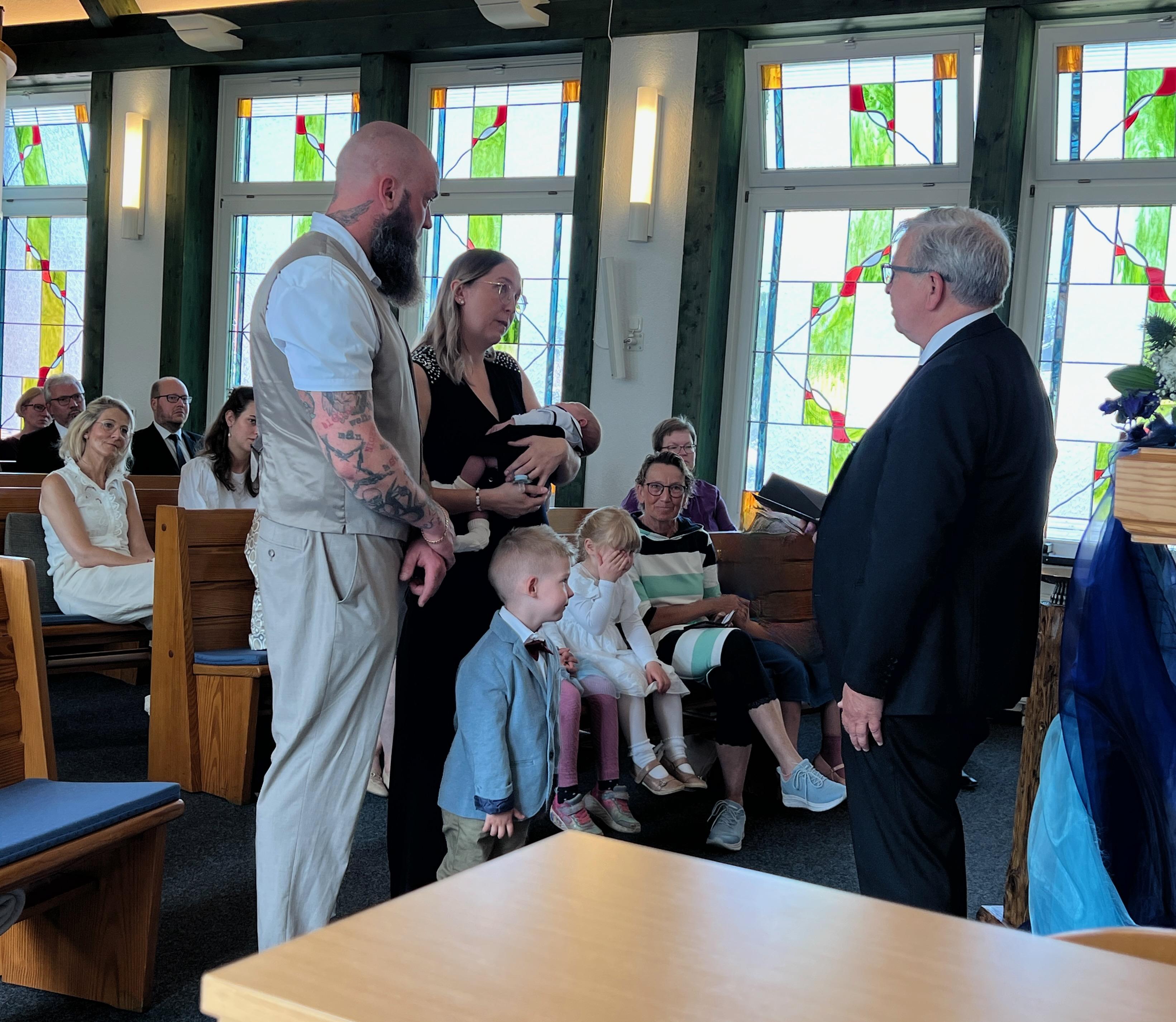 Vor der Sakarmentalhandlung der Heiligen Wassertaufe wurde noch ein Lied von einer Familie vorgetragen, es heißt: „Ich und Du …“ . Danach führte Der Vorsteher die Taufhandlung durch. Anschließend wurde Heiliges Abendmahl gefeiert. Nach Schlussgebet und Segen konnten alle Anwesenden den Eltern und dem kleinen Bruder zur Taufe von Lio gratulieren.