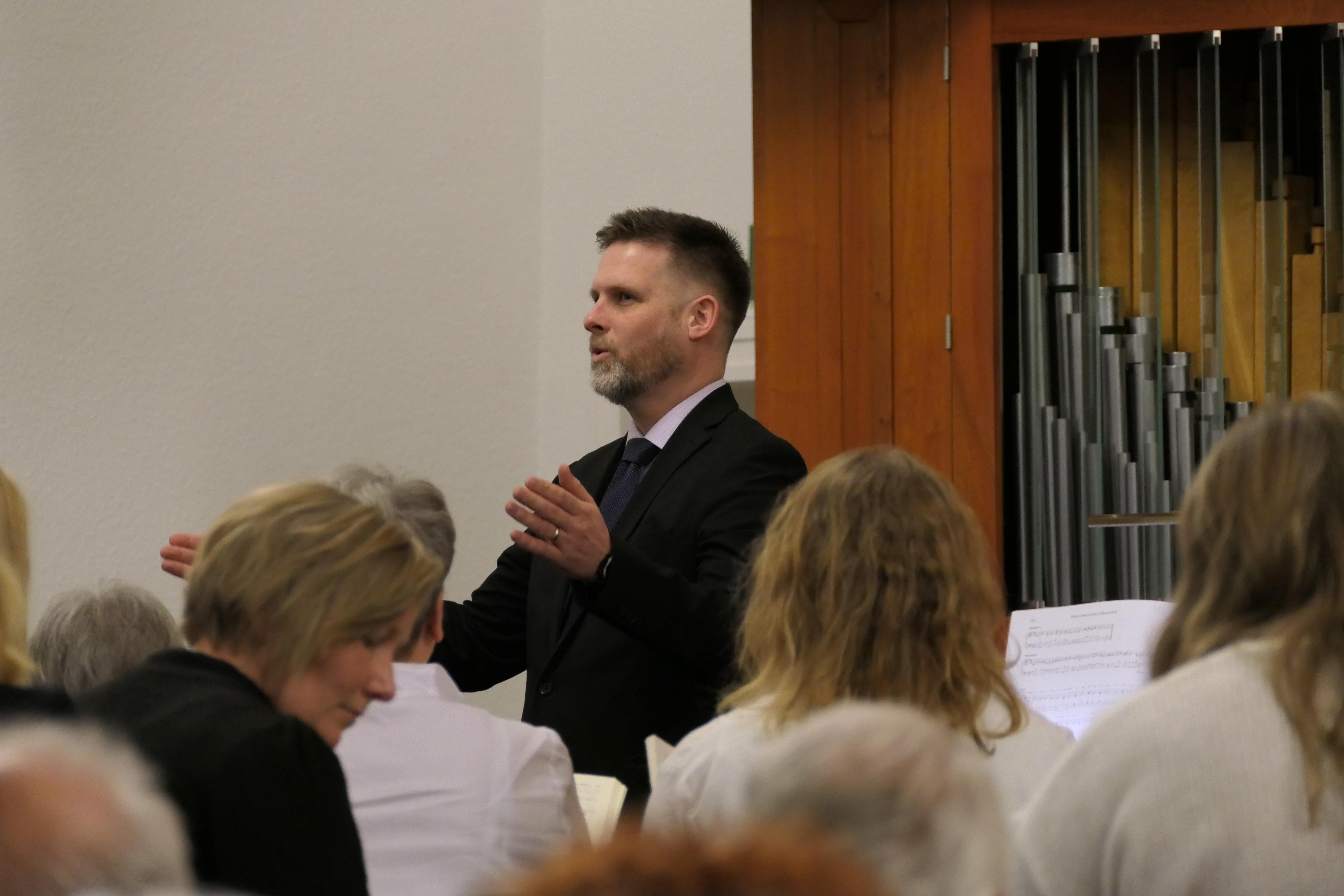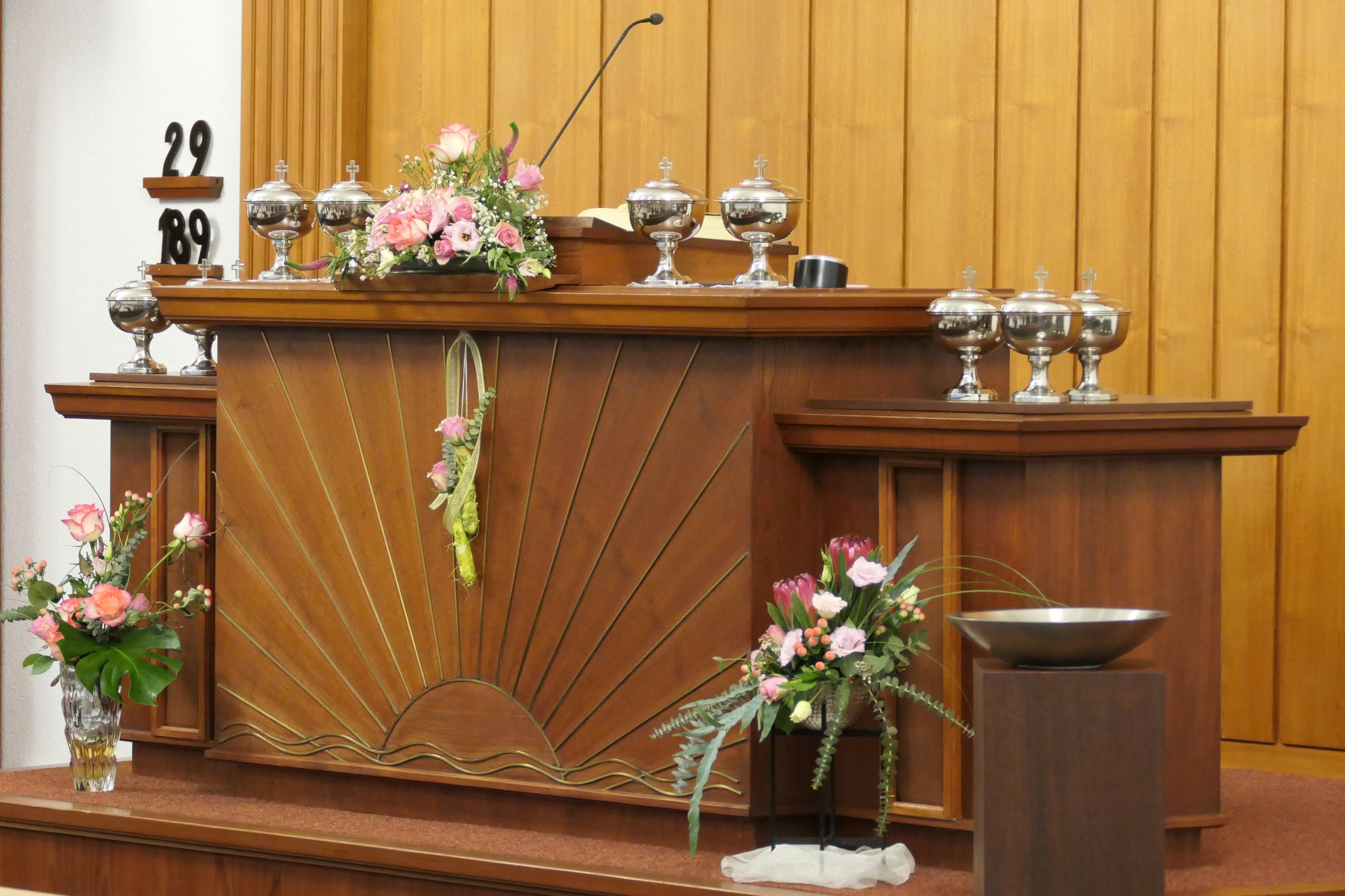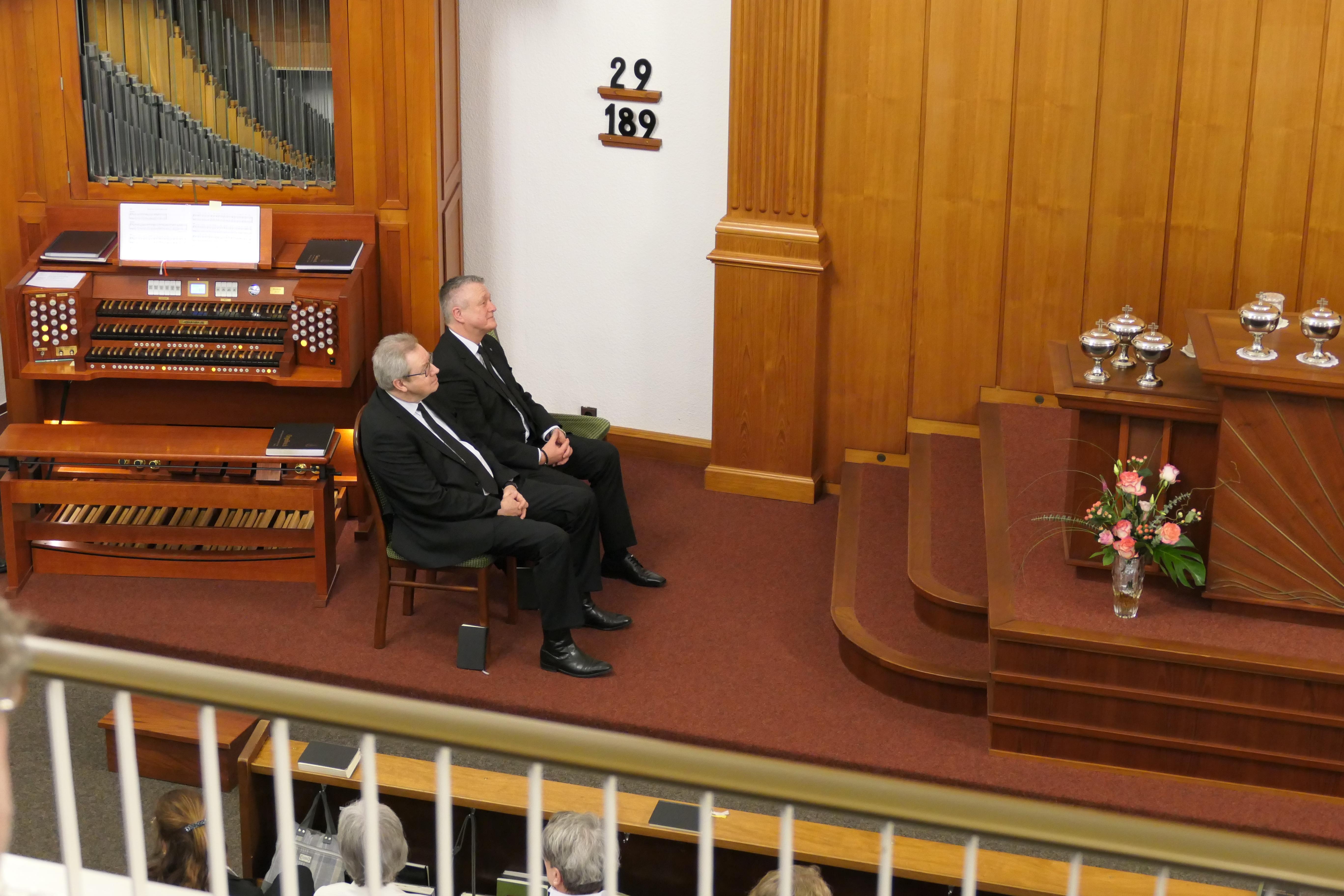 Nach dem Chorlied „Von guten Mächten treu und still umgeben“ sagte Apostel Falk unter anderem im Mitdienen: „der große Gott begegnet uns“ und stellte die Frage: „Wie finden wir es?“ Er bestärkte die Aussage unseres Bezirksapostels, Hilfe anzubieten und selbst zu helfen. Wenn einem etwas auffällt, kann er auch gerne einen Amtsbruder darauf hinweisen.
