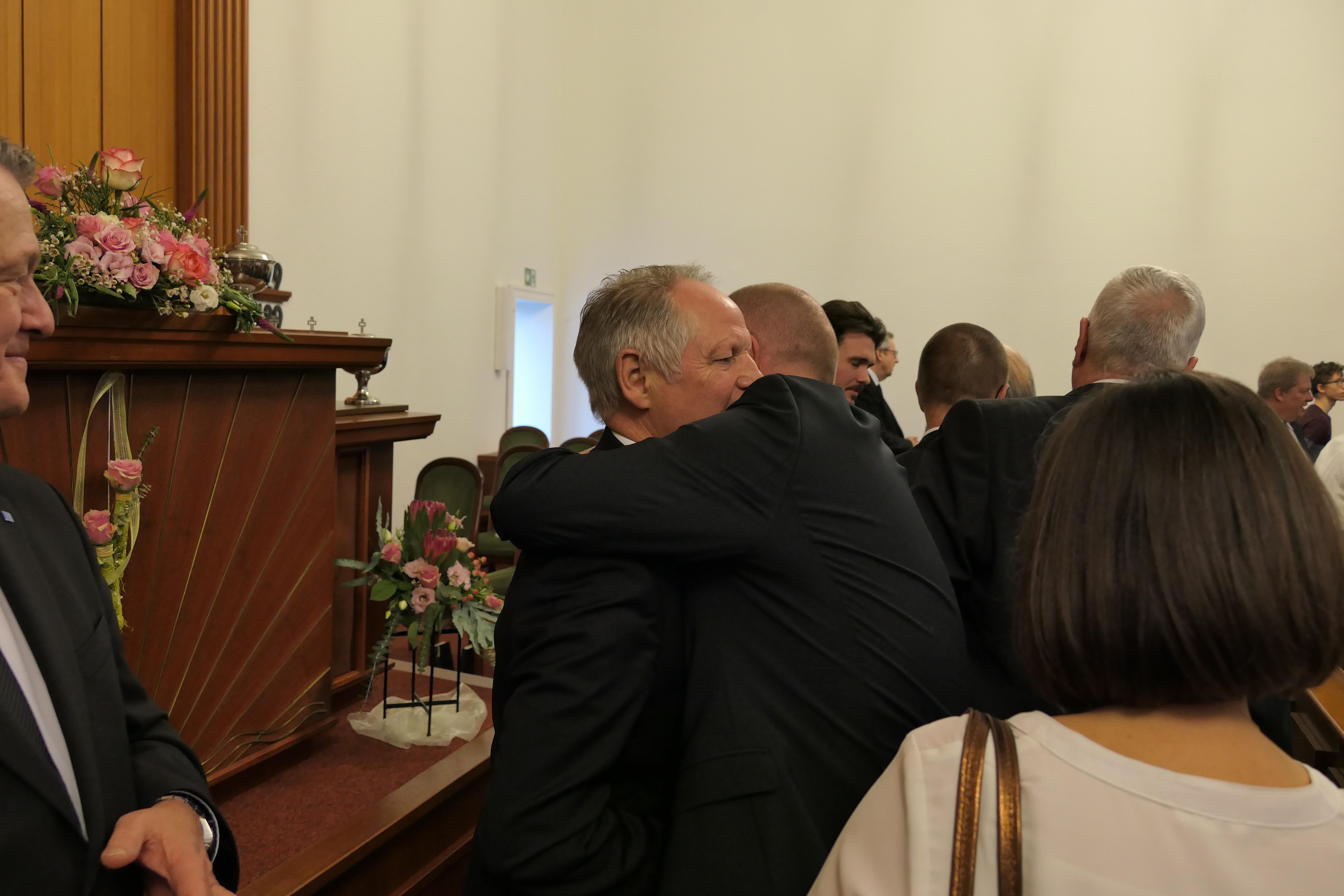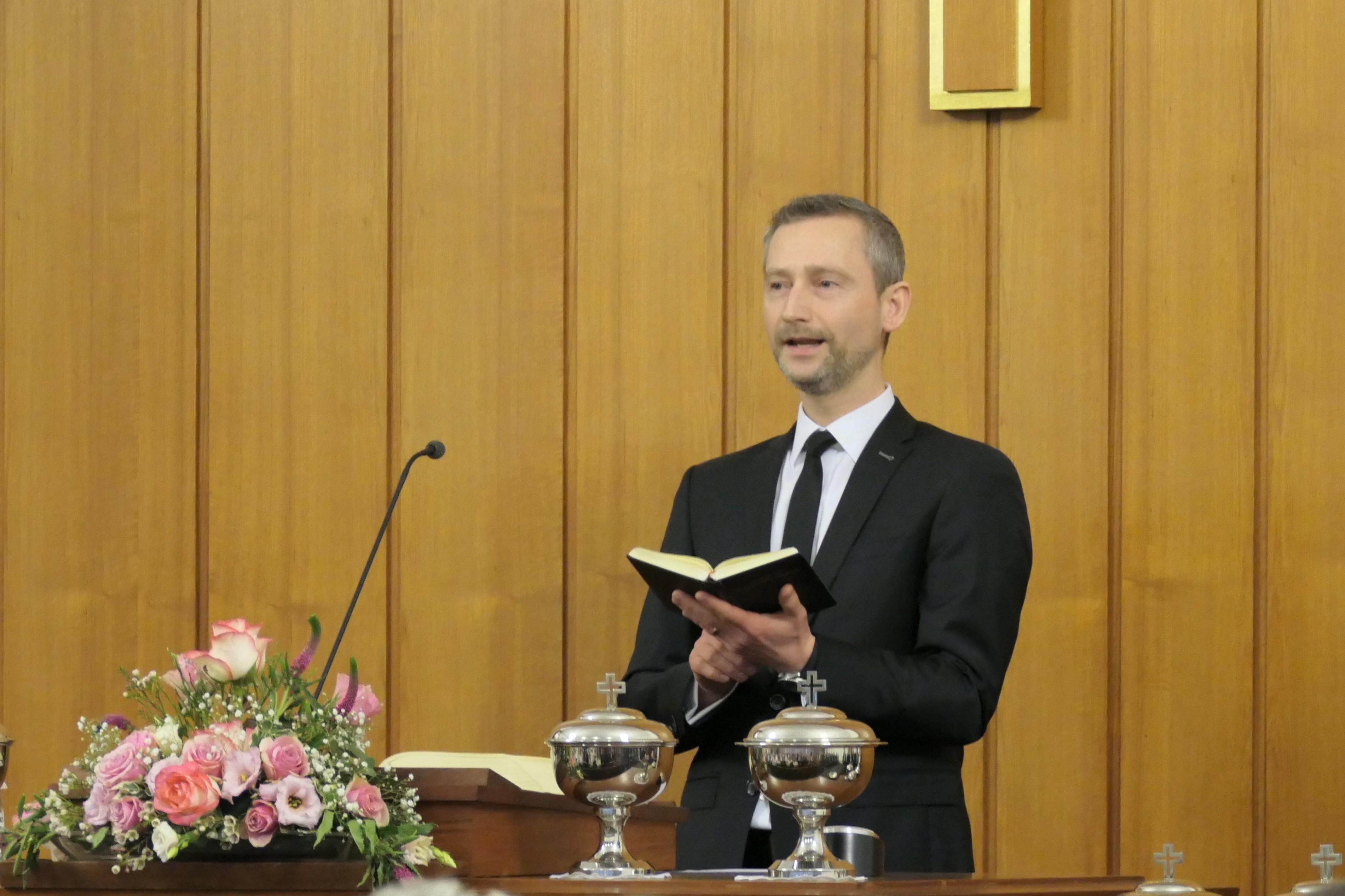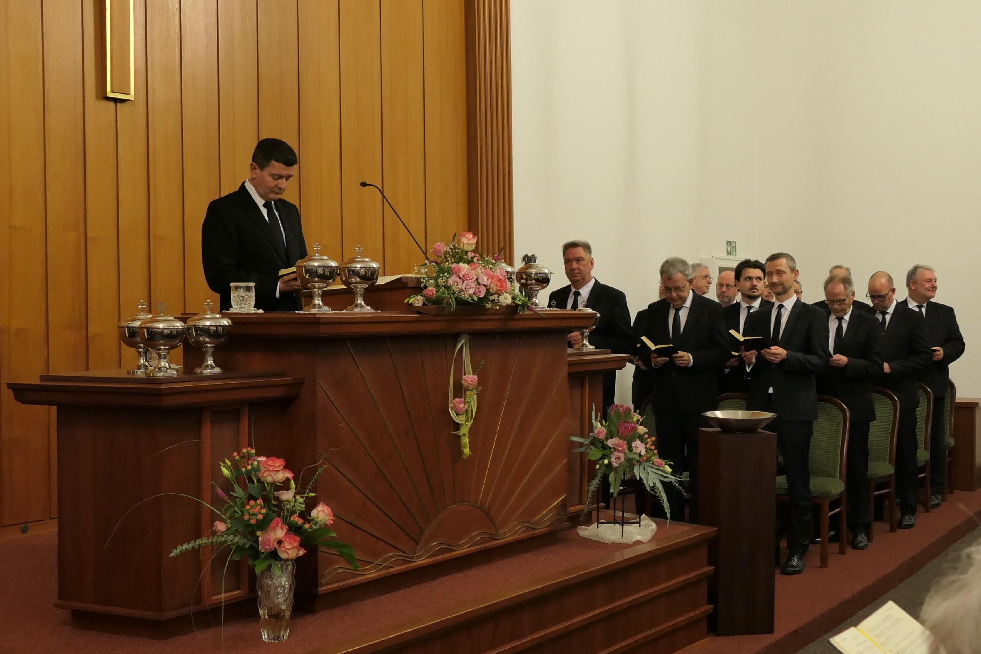 Nach Sündenvergebung und Feier des Heiligen Abendmahles auch für die Entschlafenen im großen Bezirksapostelbereich entband Bezirksapostel Heynes den Hirten Jegminat von dem Auftrag, Vorsteher für die Gemeinde Neumünster zu sein. Er dankte ihm für seine liebevolle Betreuung der Gemeinde. In Schweden hatten die beiden sich schon gut kennengelernt. Da Hirte Jegminat bereits als Jugendlicher schwedische Gemeinden betreut hat, wird er auch jetzt bis auf Weiteres in Schweden dienen.