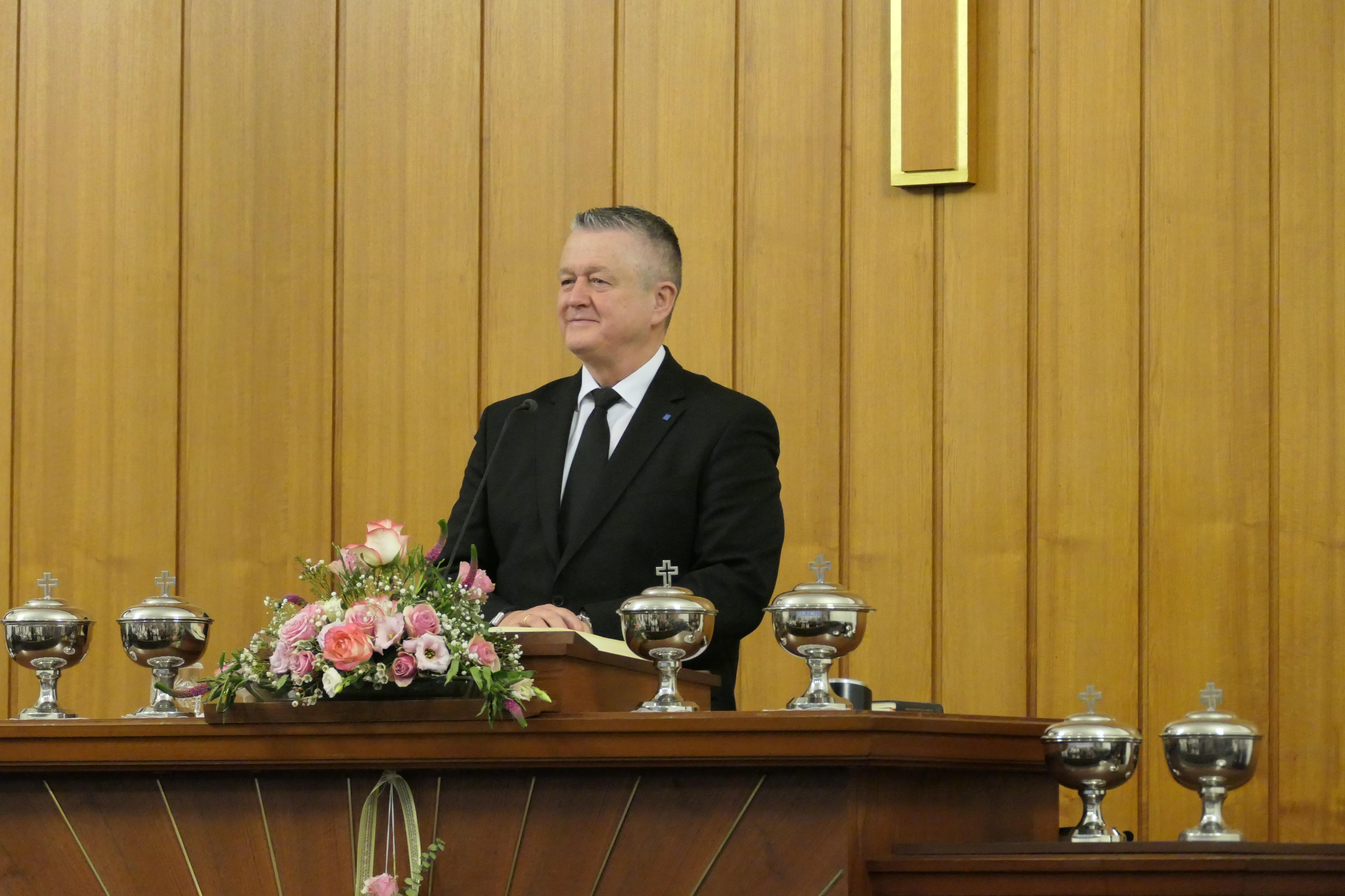 In seiner Predigt ging der Bezirksapostel zuerst auf Maria ein, die das beim Hochzeitsfest aufgetretene Problem erkannt hatte, also die Notlage ihrer Mitmenschen gesehen hatte. Der Bezirksapostel rief dazu auf, es Maria gleichzutun und offene Augen für die Sorgen und Probleme unseres Nächsten zu haben. Das kann in der Gemeinde, aber auch bei den Kindern in der Schule so sein. Hier kann jeder seine Hilfe anbieten. So können wir dazu beitragen, dass sich jeder freut und sich geliebt fühlt.