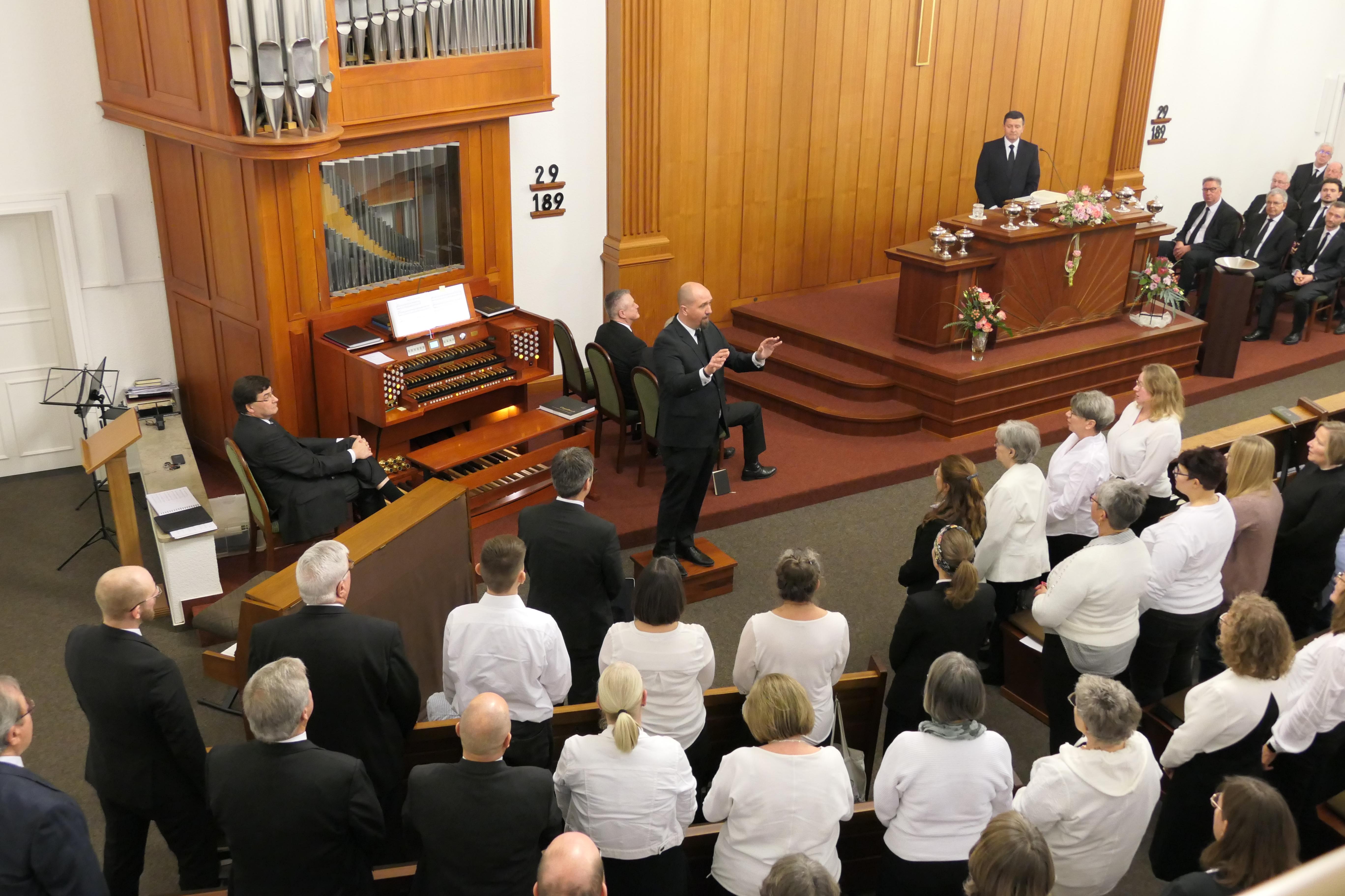 Der Gottesdienst begann mit dem Lied Nr. 29 (Nun lasst uns gehn und treten) aus dem Gemeindegesangbuch und dem Eingangsgebet. In seiner Predigt bezog sich unser Bezirksapostel zunächst auf das vom Chor vorgetragene Lied „Gloria a Dios“ (Jugendliederbuch Nr. 28), in dem das „Gott loben und preisen“ besungen wird.