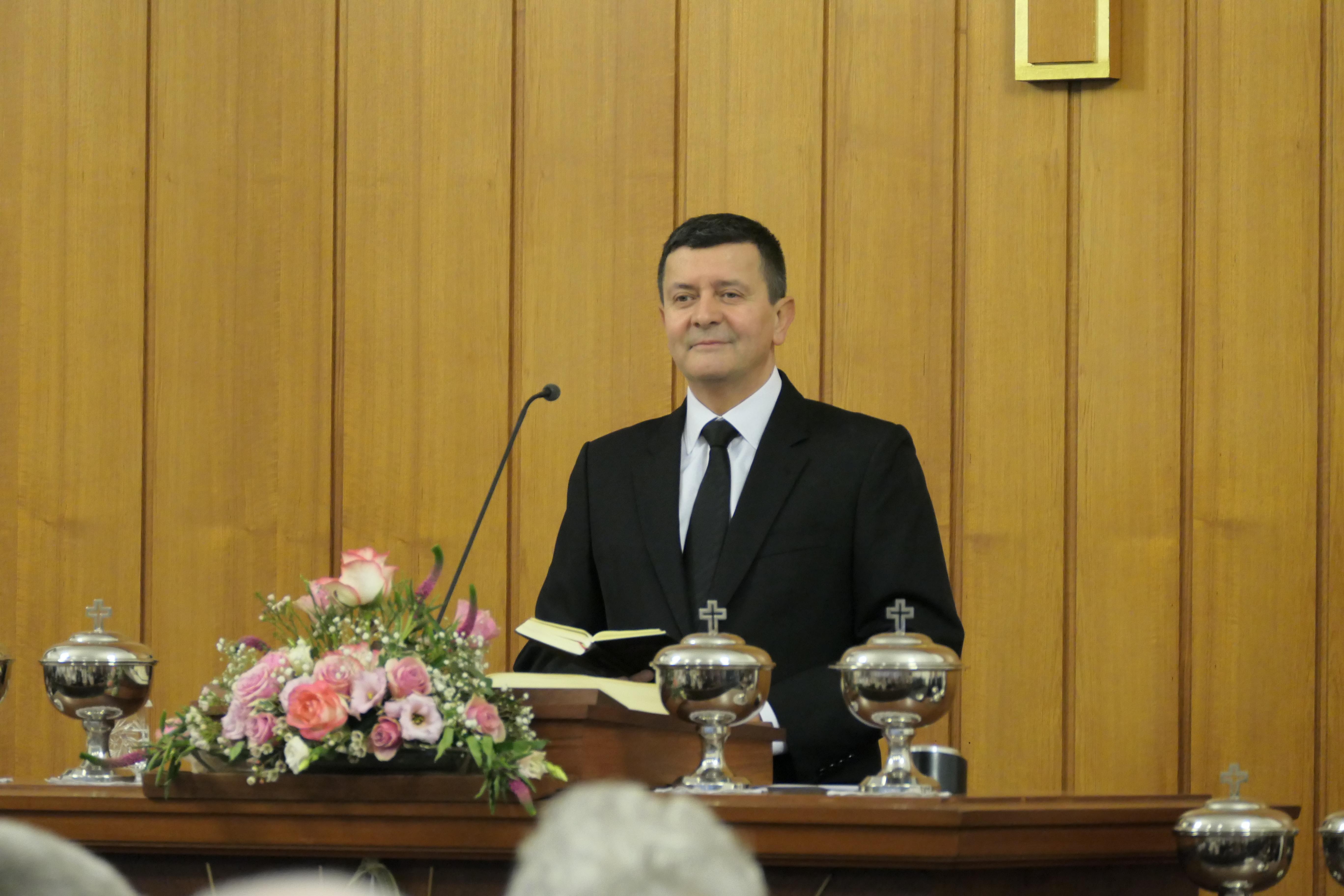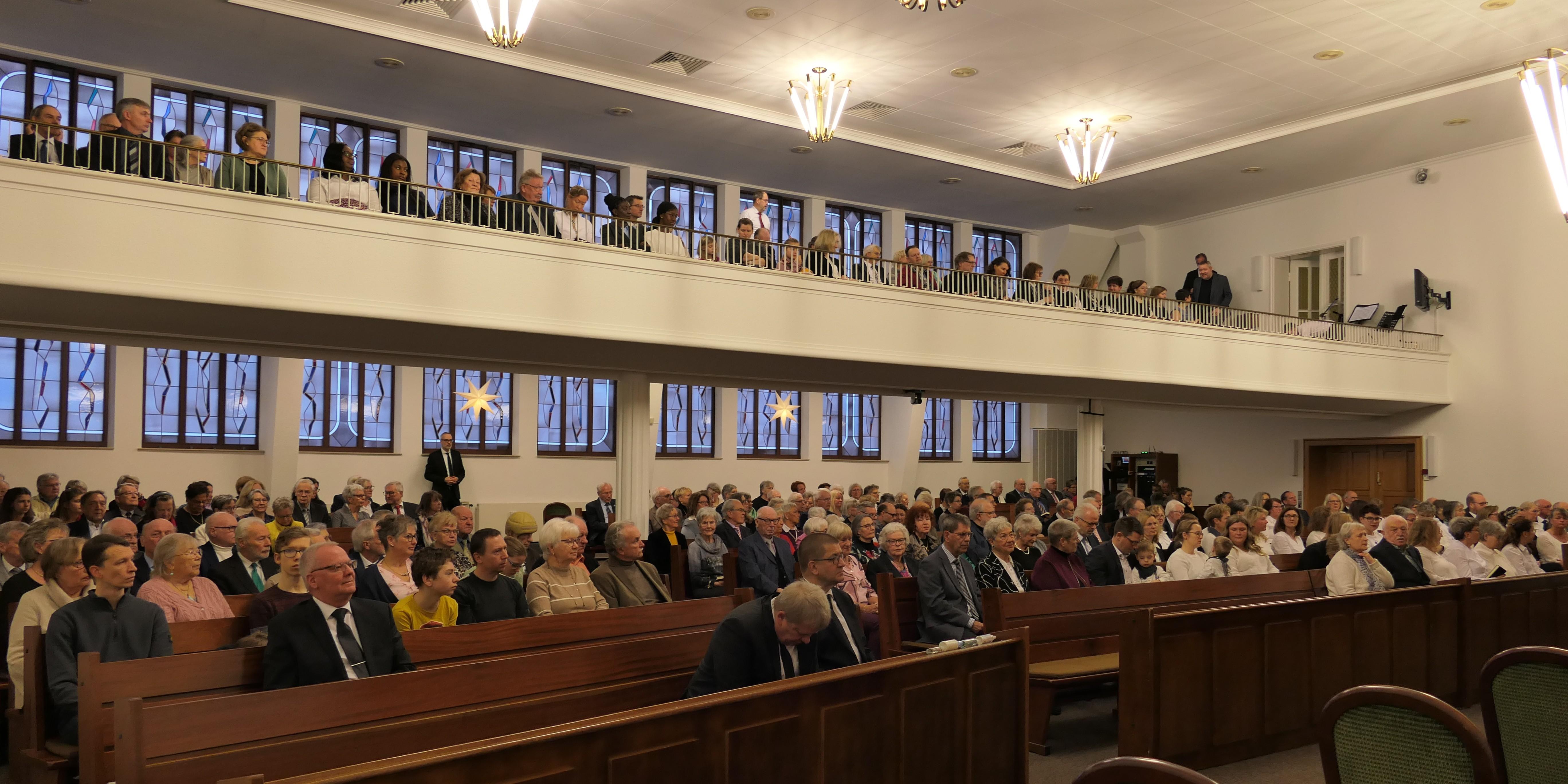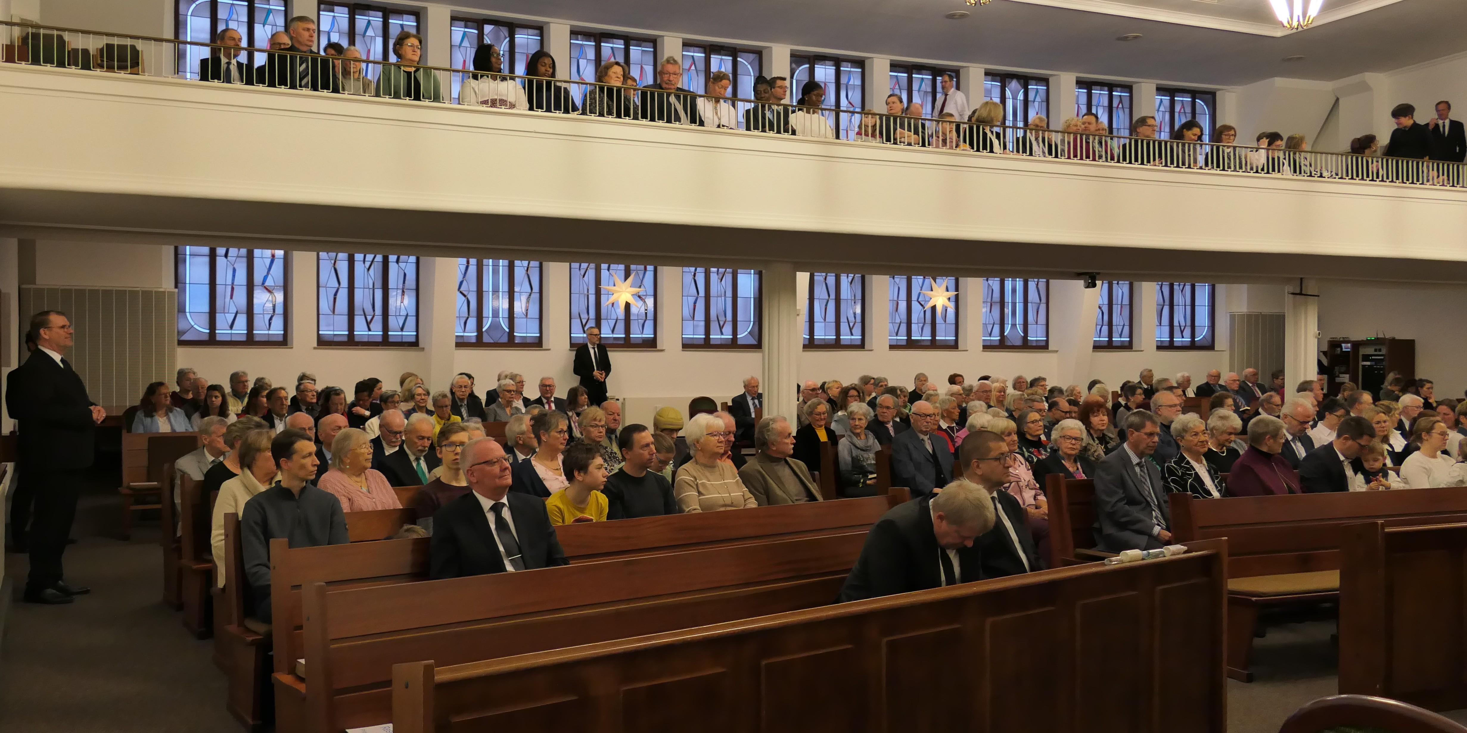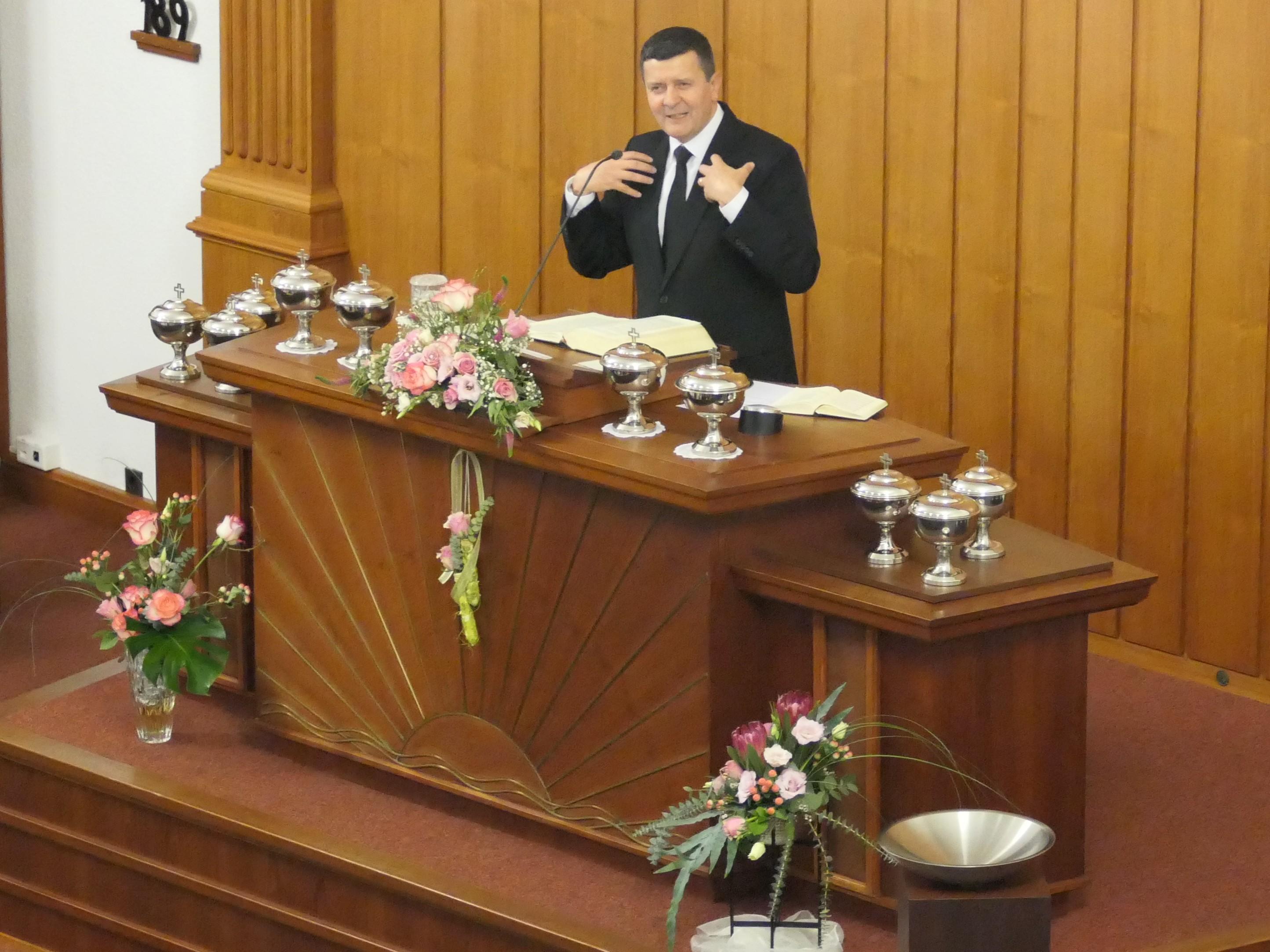 In die fast voll besuchte Kirche blickend freute er sich über die zahlreichen Geschwister, von den Senioren bis hin zu den kleinen Kindern. Da sein zu können und so die Nähe Gottes zu verspüren, ist ein Geschenk Gottes.