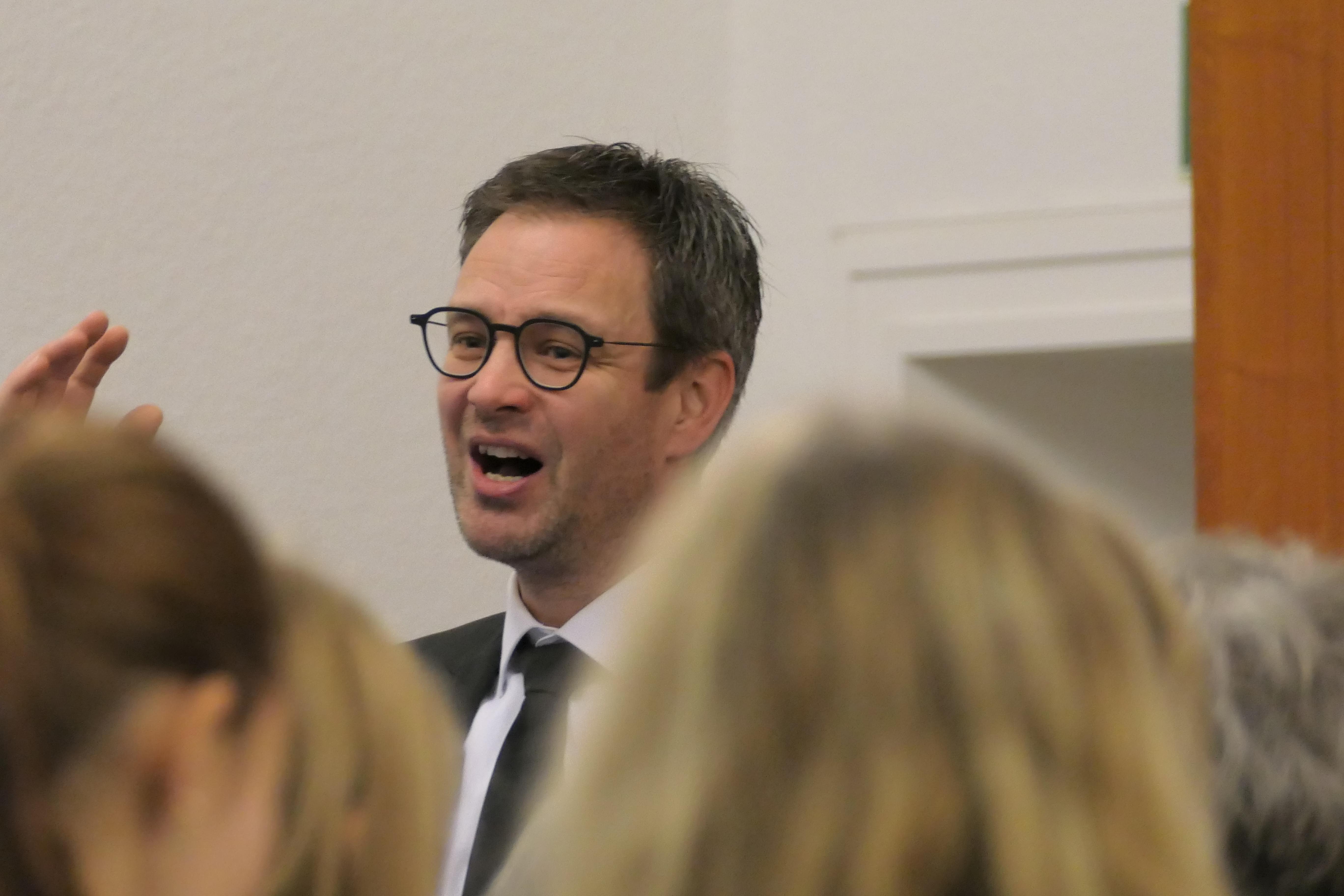 Nach dem Chorlied „Von guten Mächten treu und still umgeben“ sagte Apostel Falk unter anderem im Mitdienen: „der große Gott begegnet uns“ und stellte die Frage: „Wie finden wir es?“ Er bestärkte die Aussage unseres Bezirksapostels, Hilfe anzubieten und selbst zu helfen. Wenn einem etwas auffällt, kann er auch gerne einen Amtsbruder darauf hinweisen.