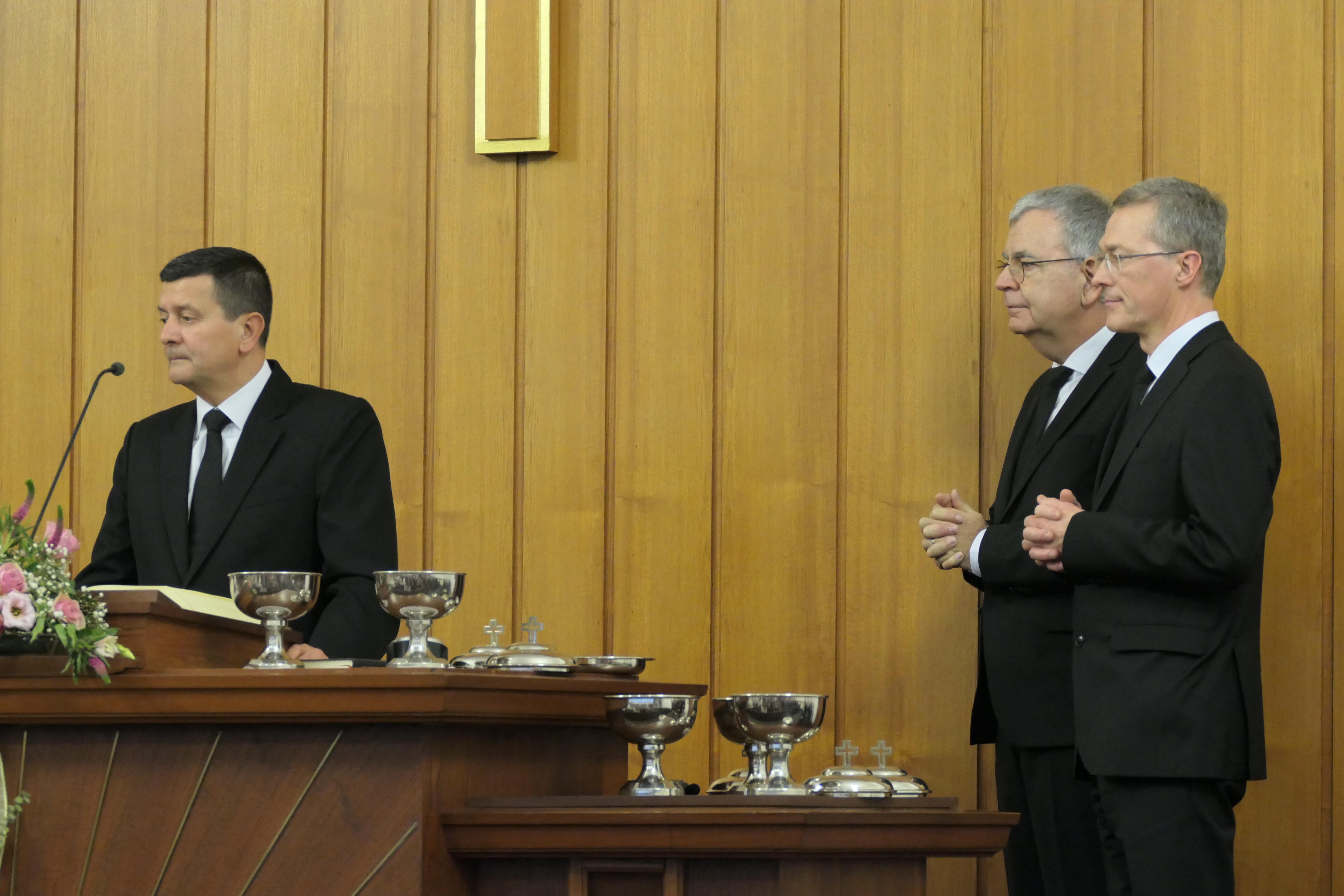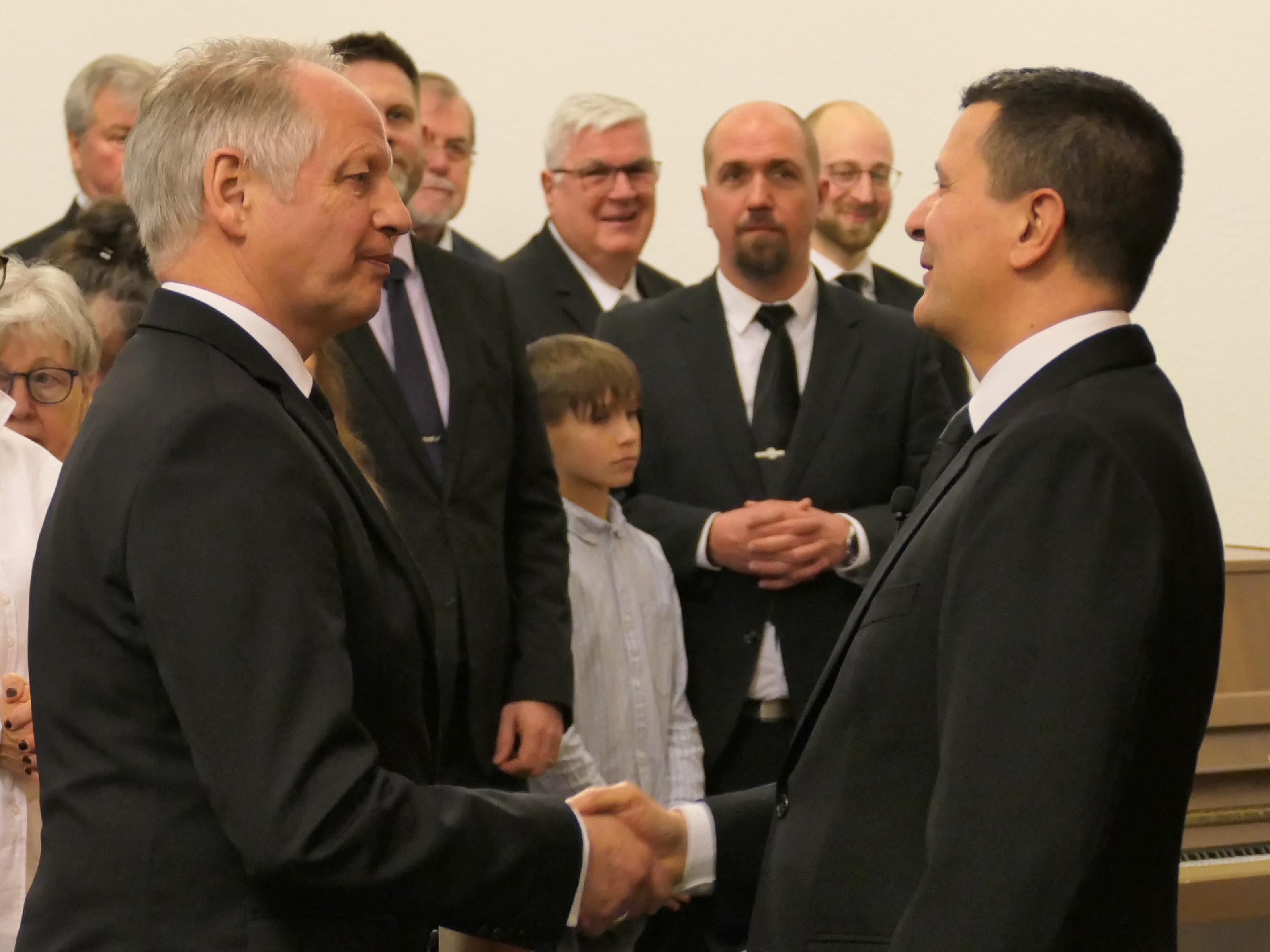 An Priester Ewald Kern als neu beauftragten Vorsteher gewandt hob der Bezirksapostel hervor, dass er als Vorsteher für die geistliche Führung der Gemeinde zuständig sei. „Lass alle in der Gemeinde beteiligt sein“, rief er ihm zu. Ein Schwerpunkt sei dabei die Organisation von Kindern, Jugendlichen und Senioren. Auch brauche es einen besonderen Blick auf die Einheit und den Zusammenhalt unter den Brüdern und Schwestern im Amt.