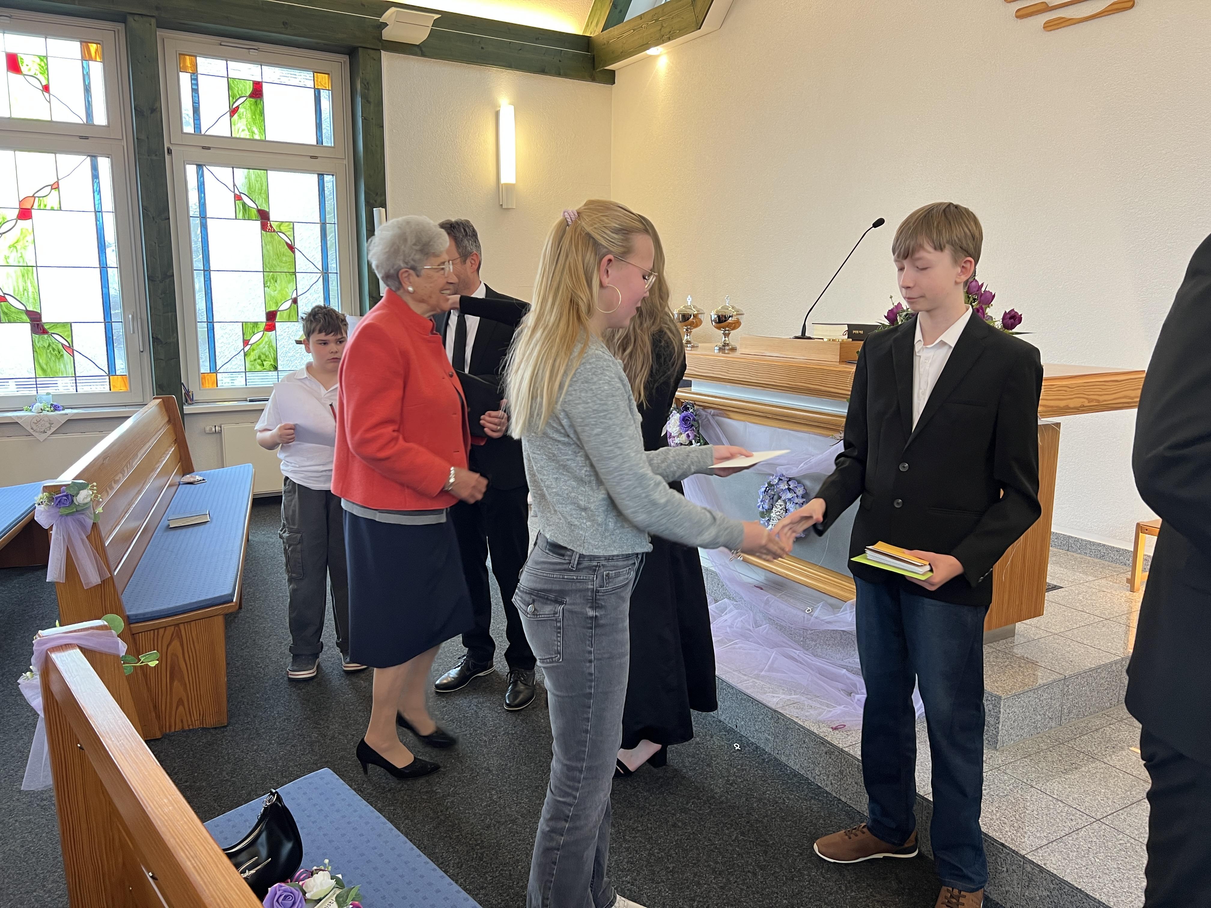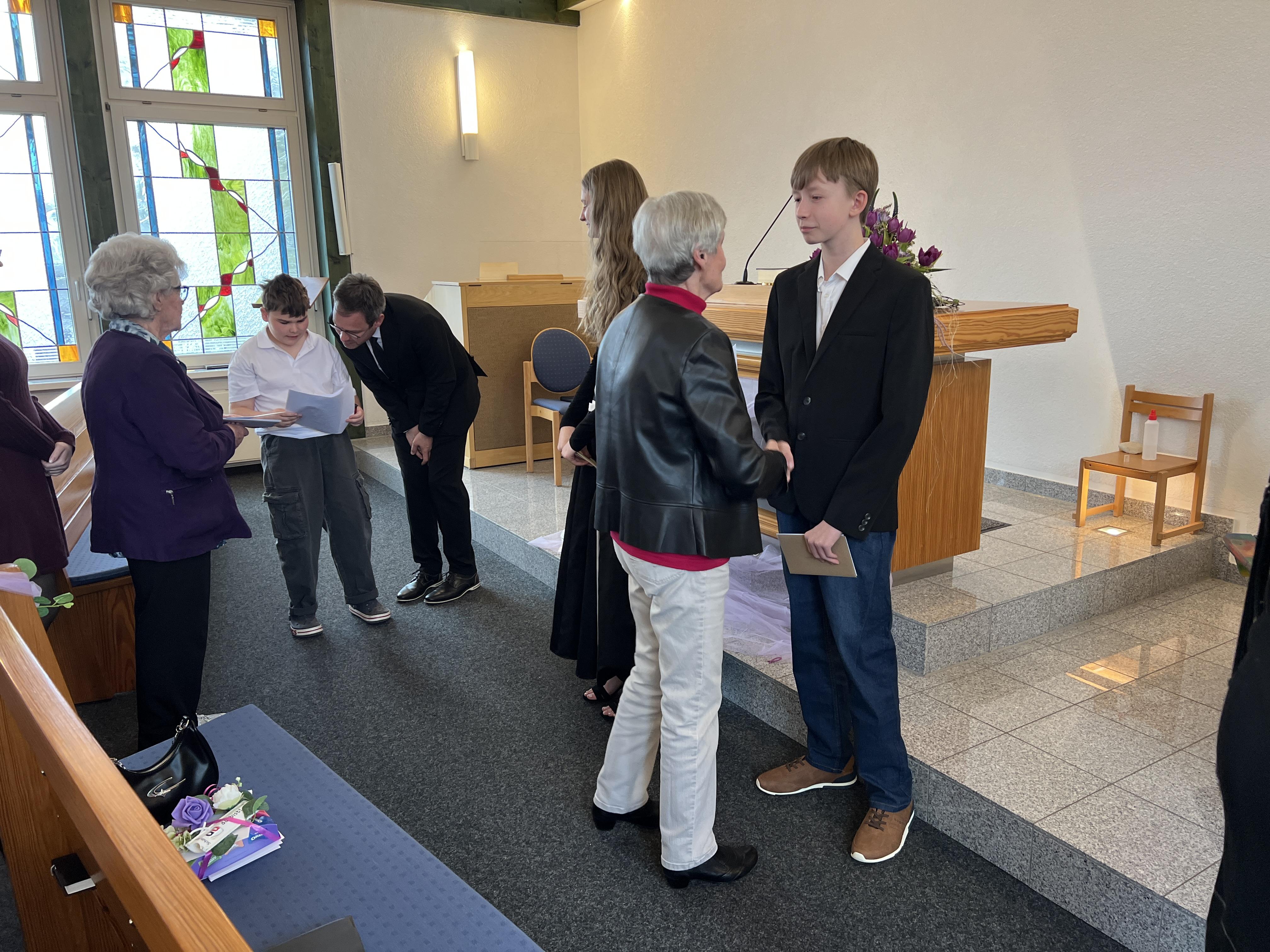 Anschließend konnte die Gemeinde die Konfirmanden mit Glückwünsche, Geschenke und Knuddeln beglücken.