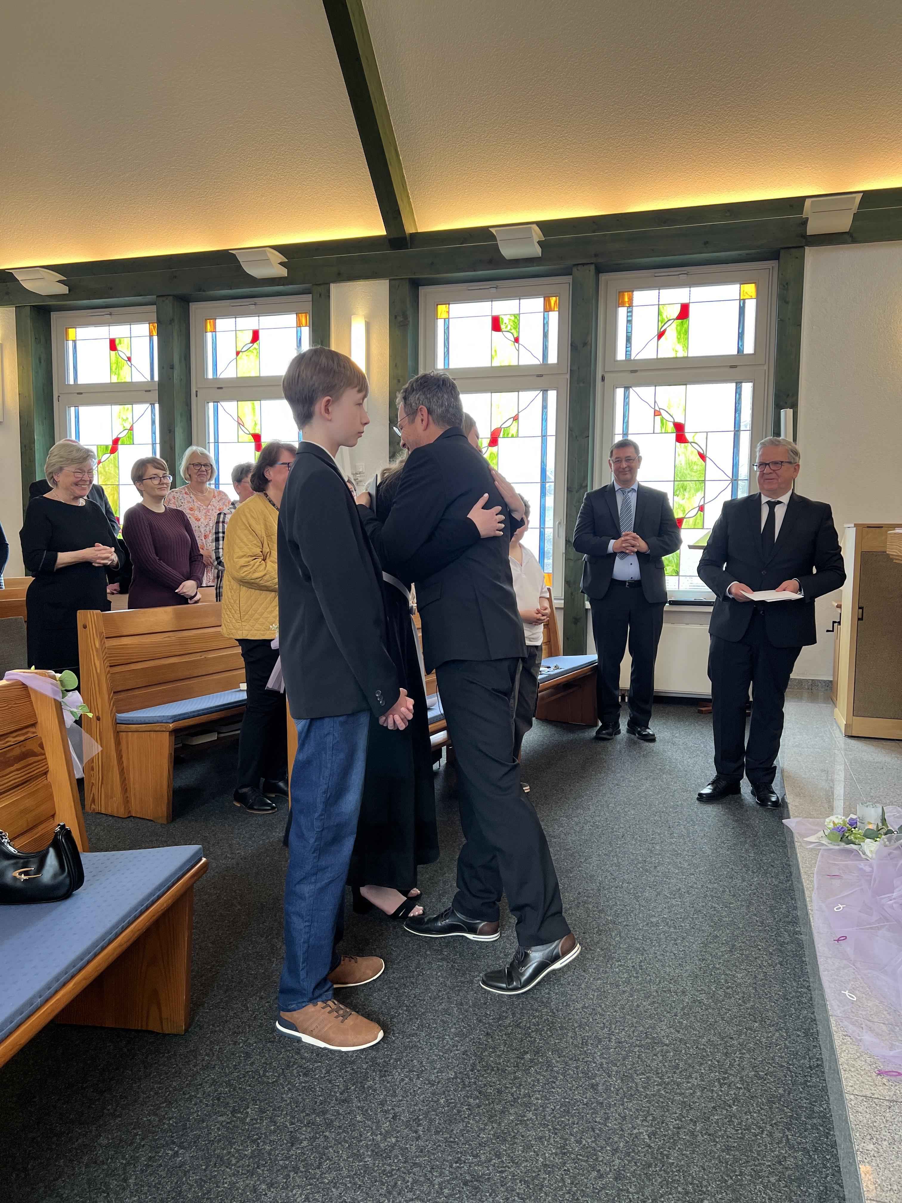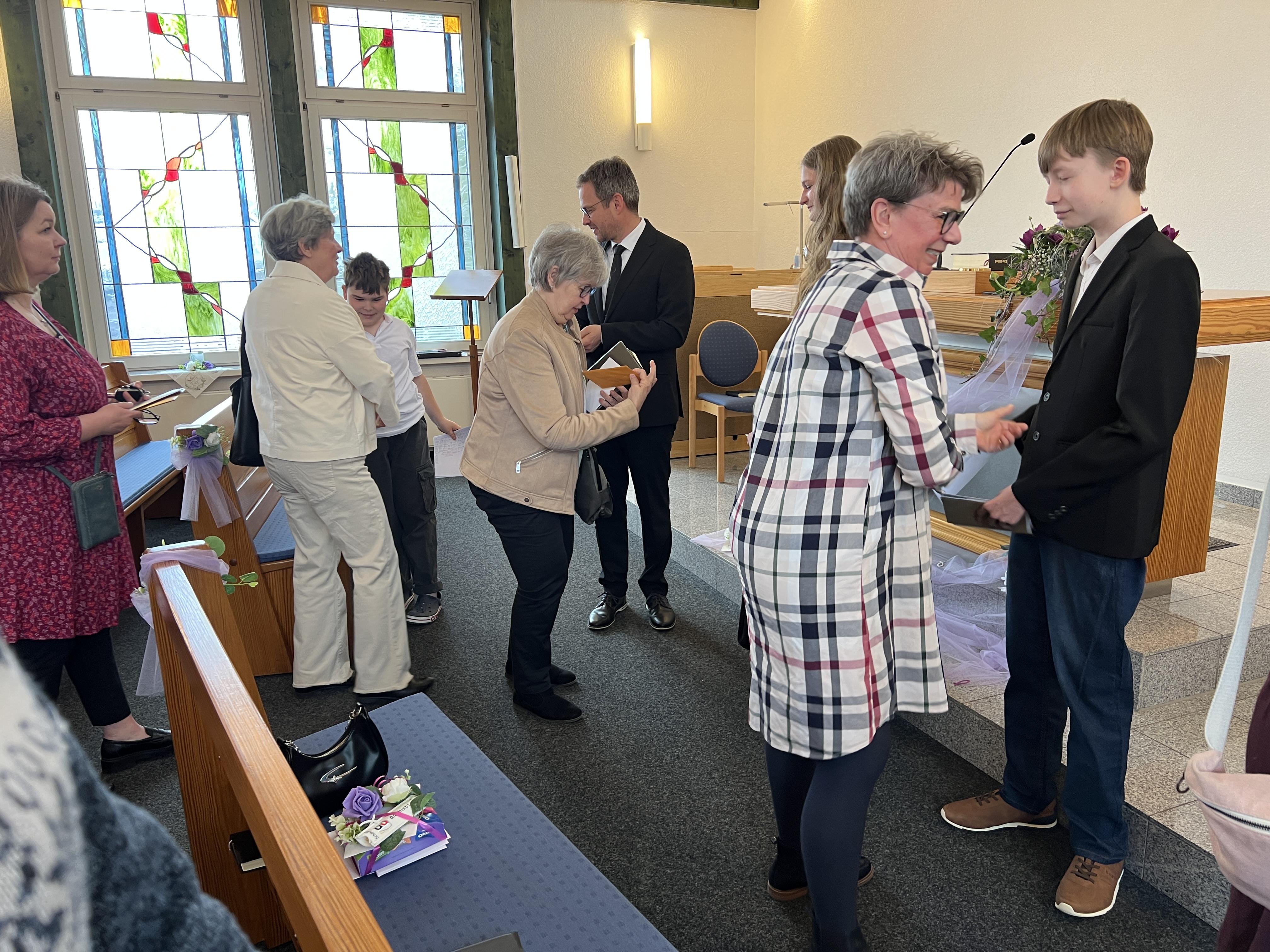 Anschließend konnte die Gemeinde die Konfirmanden mit Glückwünsche, Geschenke und Knuddeln beglücken.